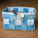 For some time now, it has been a goal of mine to make up one of my table topper patterns in regular quilting cottons. Given the fact that one of my best friends is allergic to wool, I thought that this might just be the perfect excuse to not put this off any longer. Rose and I have known each other since my husband and I ‘brought her home’ from high school to be our babysitter! We hit the jackpot! As the years have gone by, Rose took care of my kids for years, went on to study art, married and moved to Colorado, and started a successful online quilting business – through it all we have become dearest friends (neither Rose nor I have sisters!) We often laugh as we figure that it’s probably a good thing we don’t live closer to each other because of all the crazy mischief we could get into! Anyhow, we have exchanged Christmas/birthday packages for years (get this – we have the same birthday!!). So here’s the piece I made for her, it’s even got a bit of bling to it, with Swarovski crystals. I loved the blue, sparkly, snowflake fabrics I used, especially since you can keep them out well past the Christmas season. In the last photo I used the same fabrics to make this basket – made from a  pattern (Aunties Two Patterns) I picked up at the Sewing Expo show that came to the Twin Cities in early November. Was kind of nice diversion from the projects I’m usually involved in!