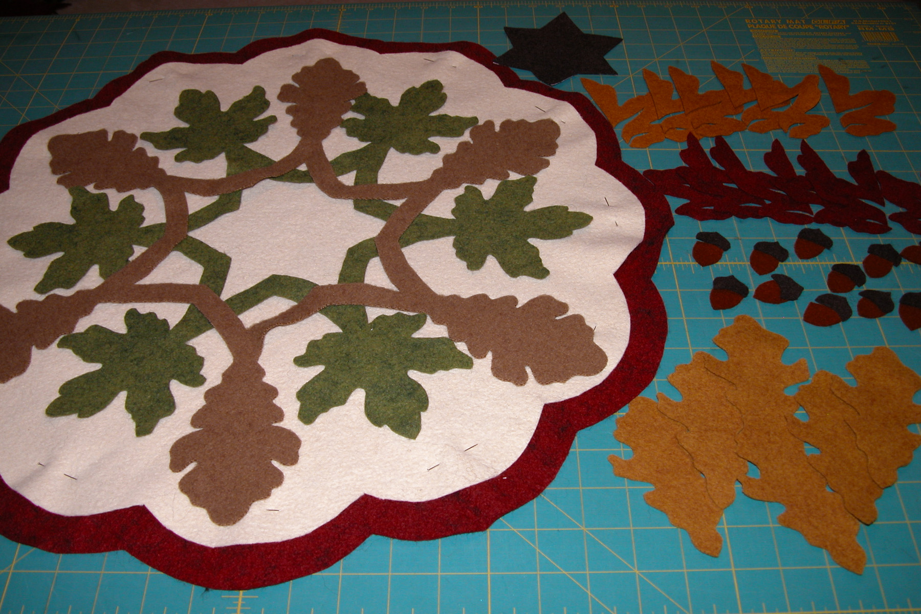 And if that was not ‘inspirational’ enough, I received a second phone call from another local quilt shop – Eagle Creek Quilt Shop. Becky and Lori have been very encouraging and helpful to me. Recently they took a few of my samples to the spring market in Kansas, where the pattern designs were met with a very positive and enthusiastic response! I am so grateful for their support. Eagle Creek carries a considerable amount of felted wool, as well as wool felt from National Non-Wovens. The shop already has some of my patterns, but on June 1 and 2, they will be having their monthly ‘Breakfast Club’ and have invited me to come and make a short presentation introducing my samples and patterns. I realized that creating a few more samples will be very helpful at these events and resolved to get busy!!